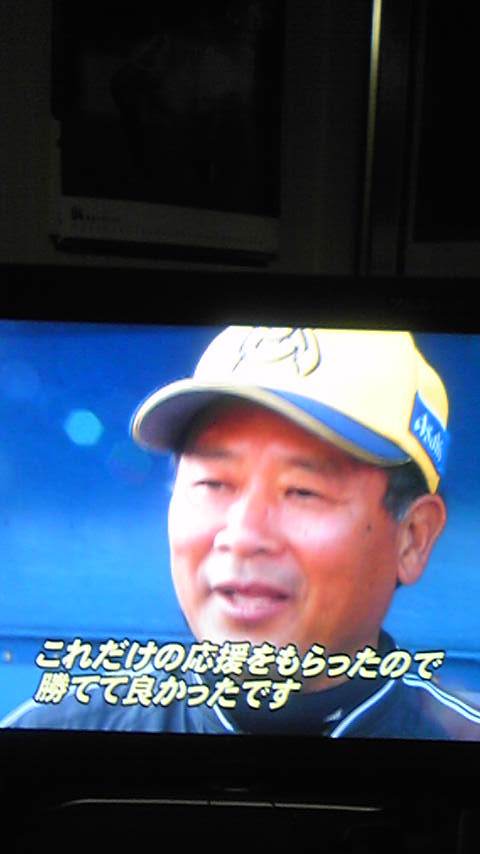 そのシーンは見ていないんです。長男と一緒にアニメ見ていました。でも携帯で「今岡タイムリー!」の文字を見て、すぐにチャンネルを変えさせてもらいました。今岡が交代を告げられ、ベンチに戻っていくところでした・・・。Jsportsの実況が「このまま眠っていて欲しかった」と今岡選手のことを言っていました。しっかり起きているんだよ。明日からも頼んだよ。